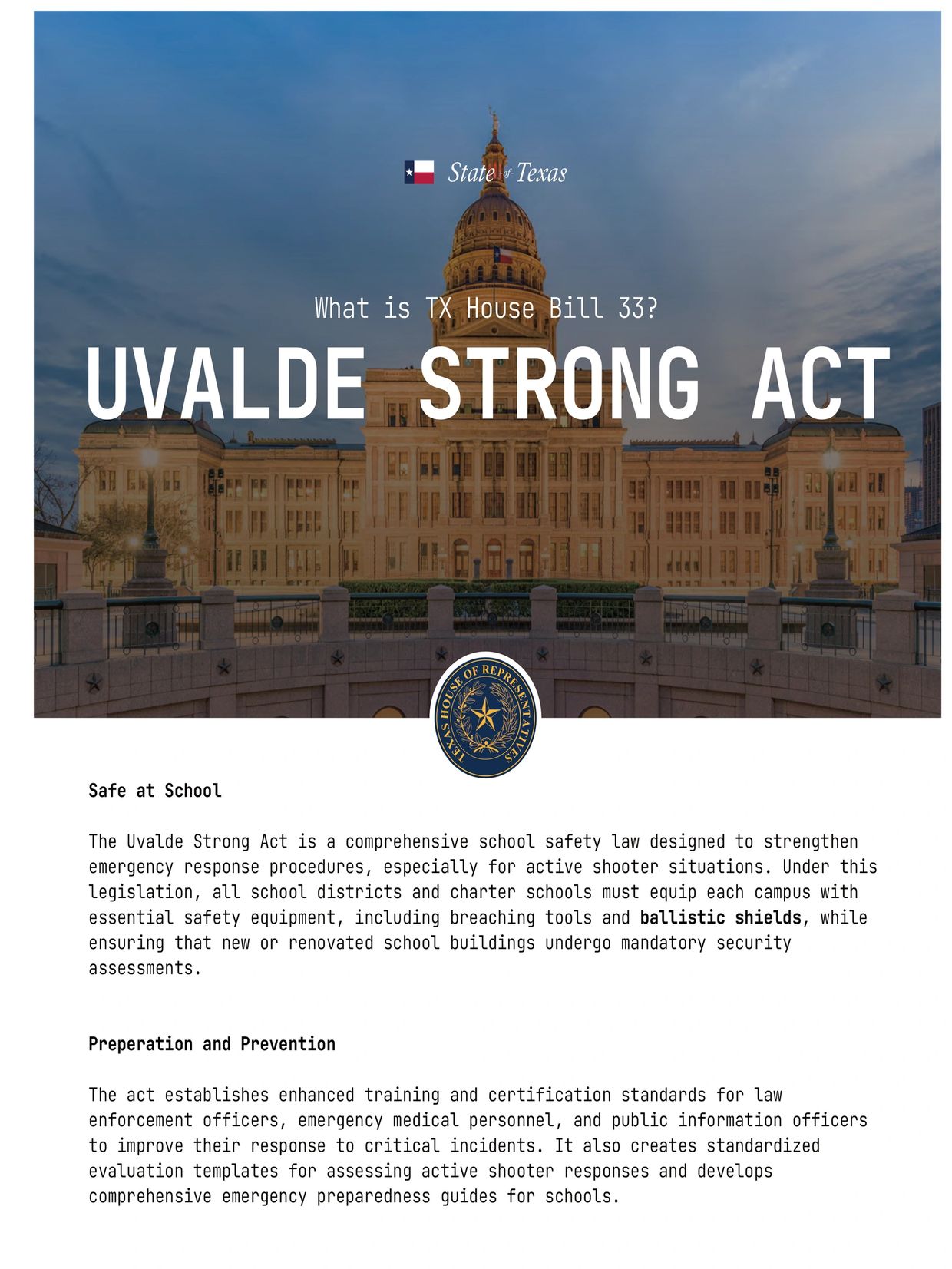 Ballistic Shield for Texas Schools